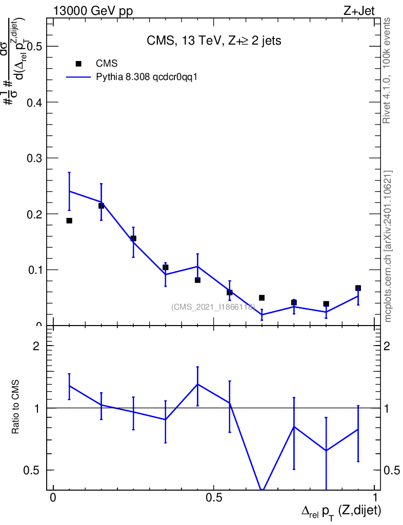 Lines: data, pythia8 8.308 qcdcr0qq1 |