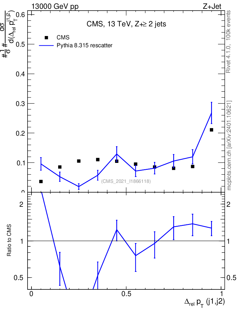 Lines: data, pythia8 8.315 rescatter |