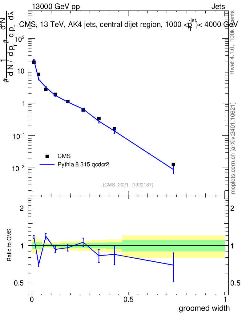Lines: data, pythia8 8.315 qcdcr2 |
