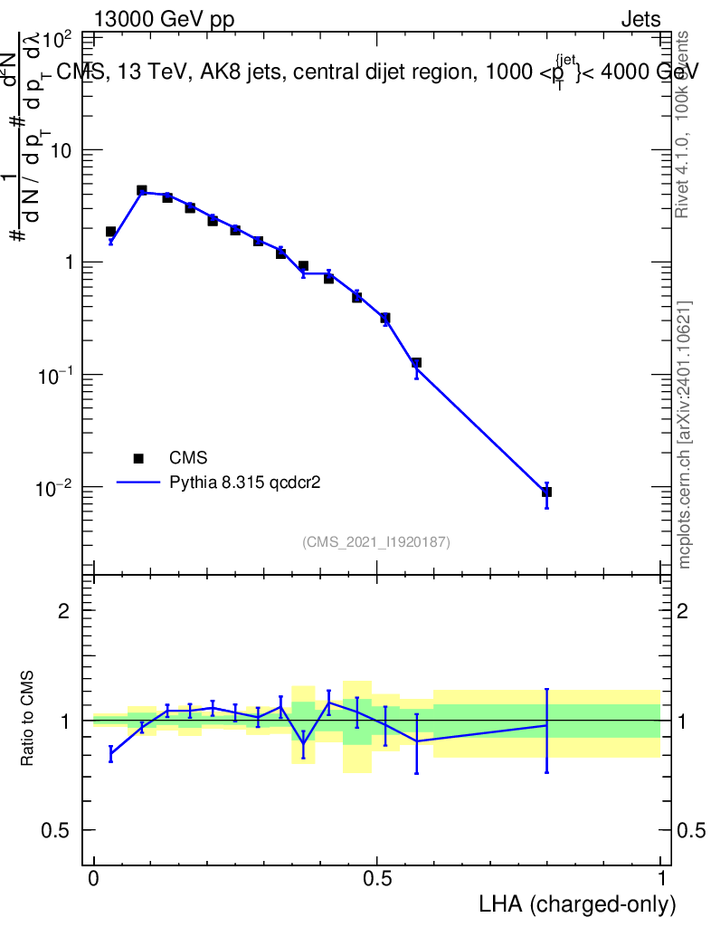 Lines: data, pythia8 8.315 qcdcr2 |