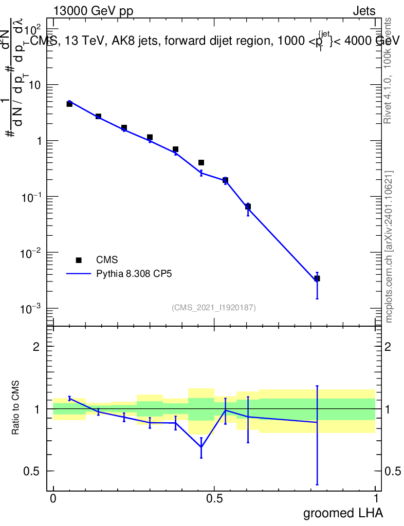 Lines: data, pythia8 8.308 CP5 |