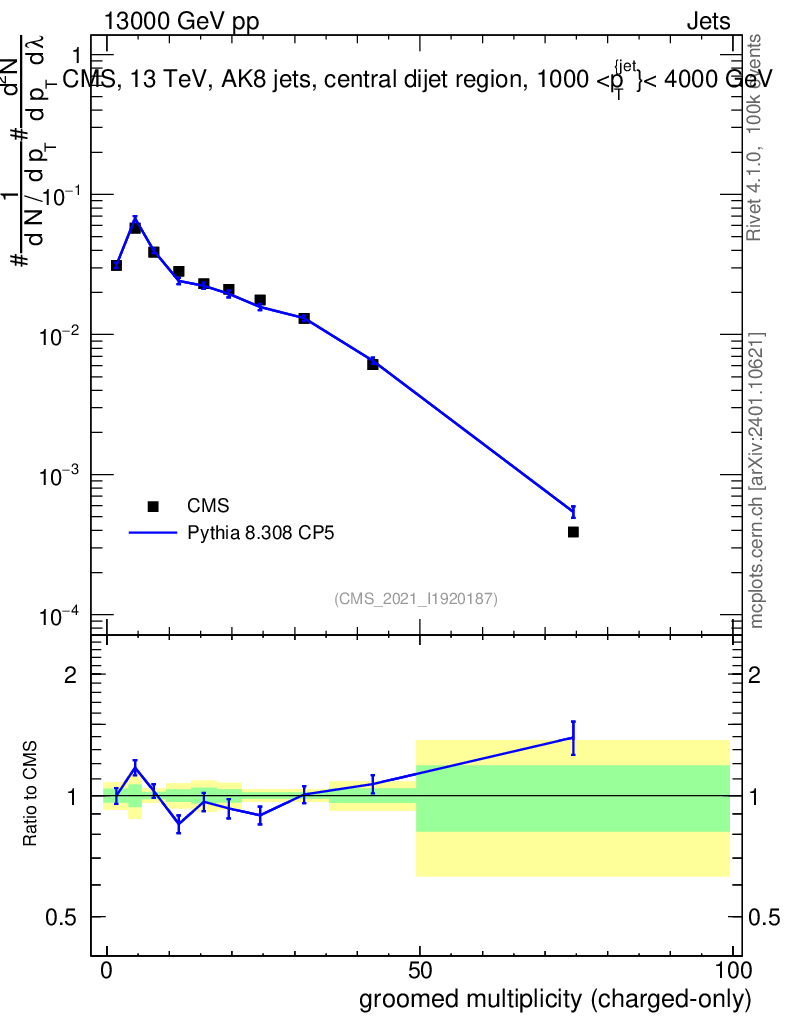 Lines: data, pythia8 8.308 CP5 |