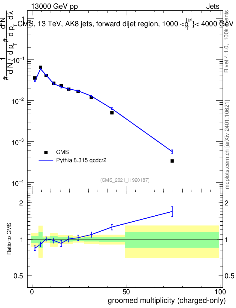Lines: data, pythia8 8.315 qcdcr2 |