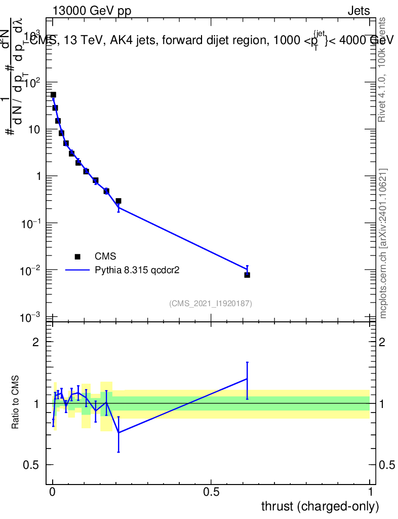 Lines: data, pythia8 8.315 qcdcr2 |