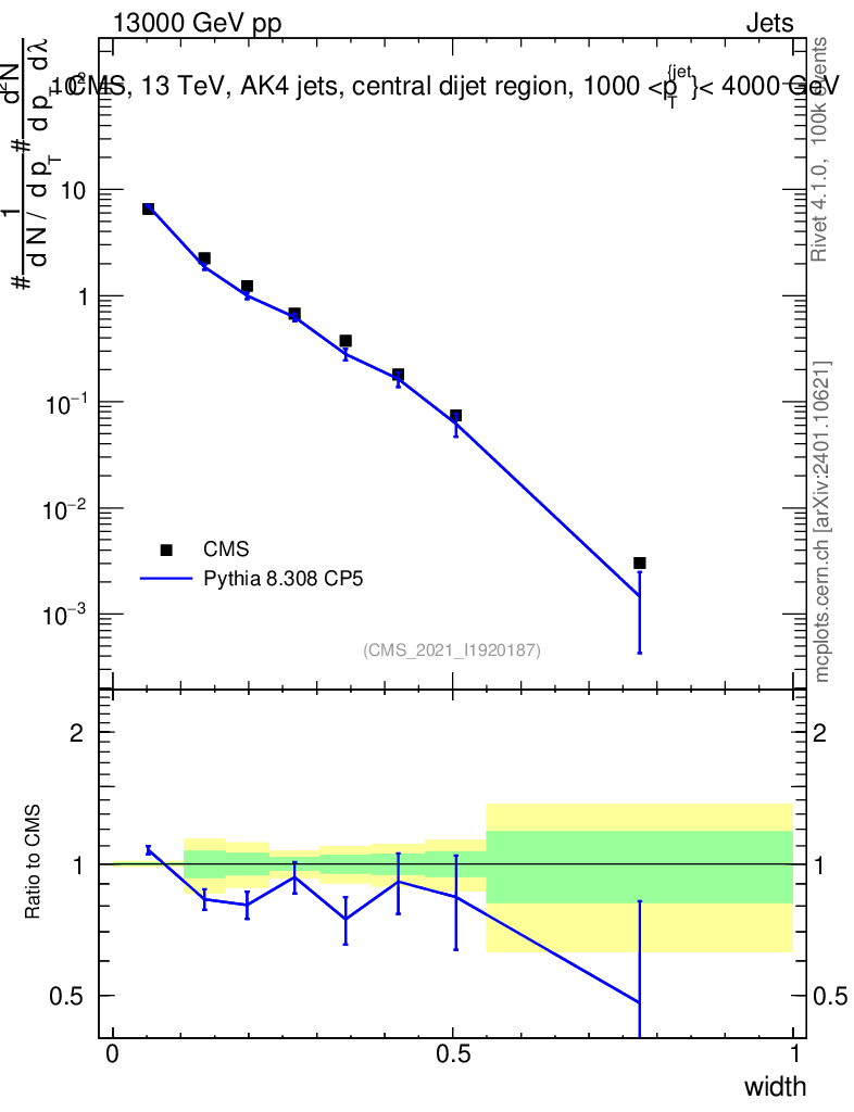 Lines: data, pythia8 8.308 CP5 |