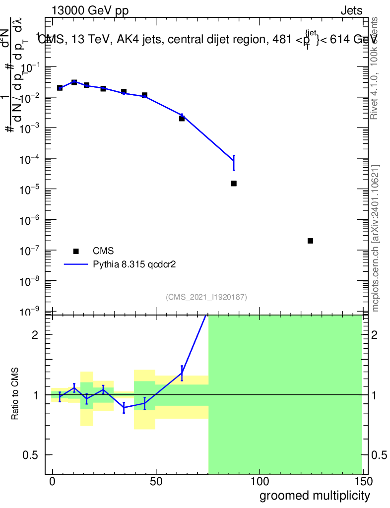 Lines: data, pythia8 8.315 qcdcr2 |