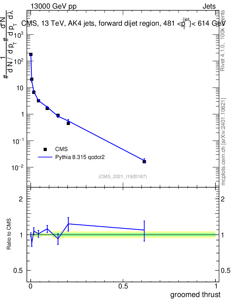 Lines: data, pythia8 8.315 qcdcr2 |