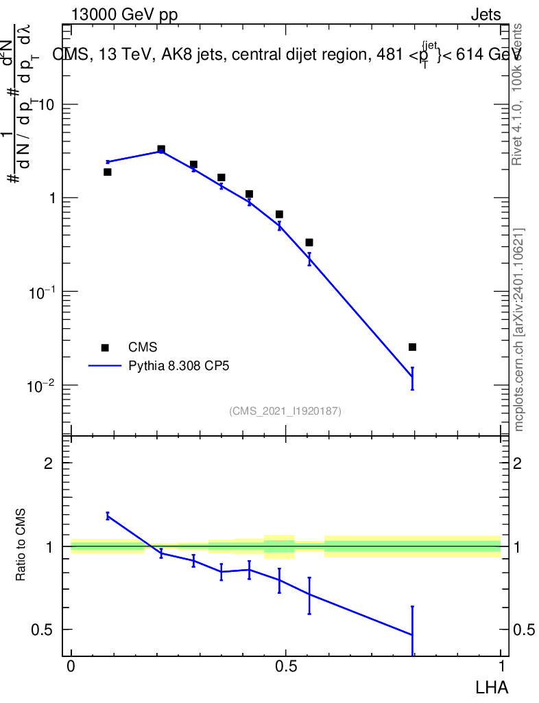 Lines: data, pythia8 8.308 CP5 |