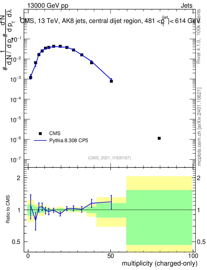 Lines: data, pythia8 8.308 CP5 |