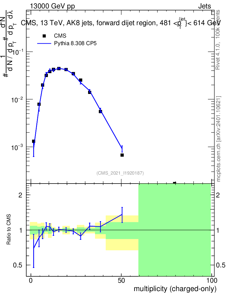 Lines: data, pythia8 8.308 CP5 |