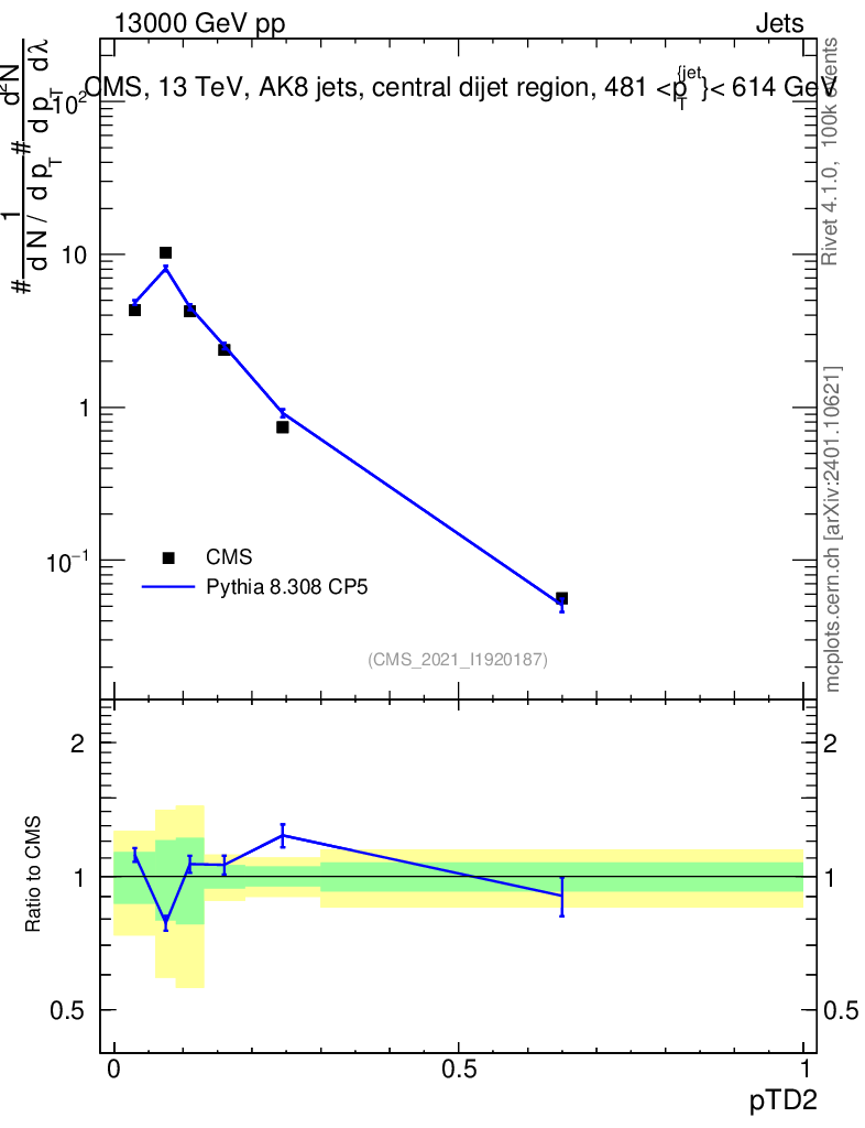 Lines: data, pythia8 8.308 CP5 |
