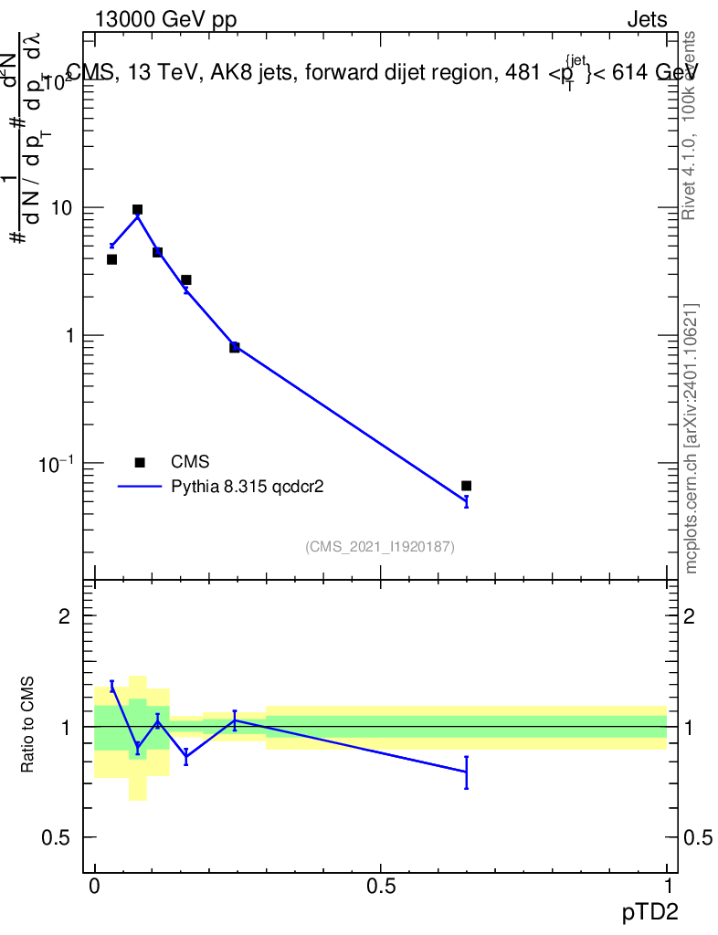 Lines: data, pythia8 8.315 qcdcr2 |