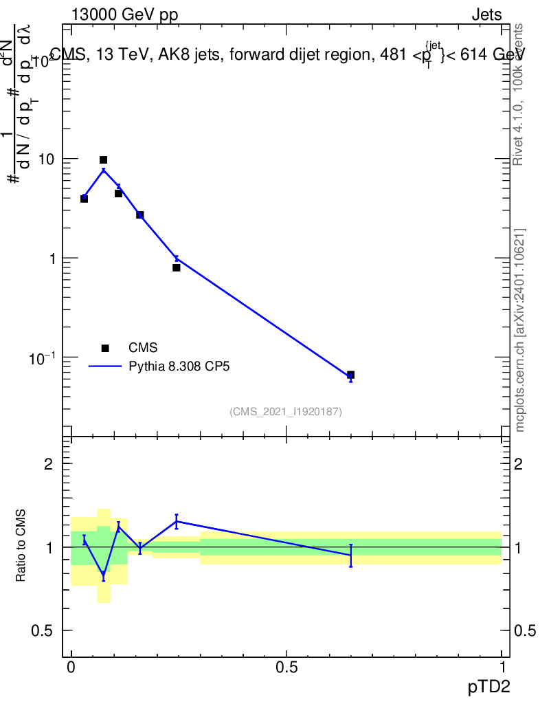 Lines: data, pythia8 8.308 CP5 |
