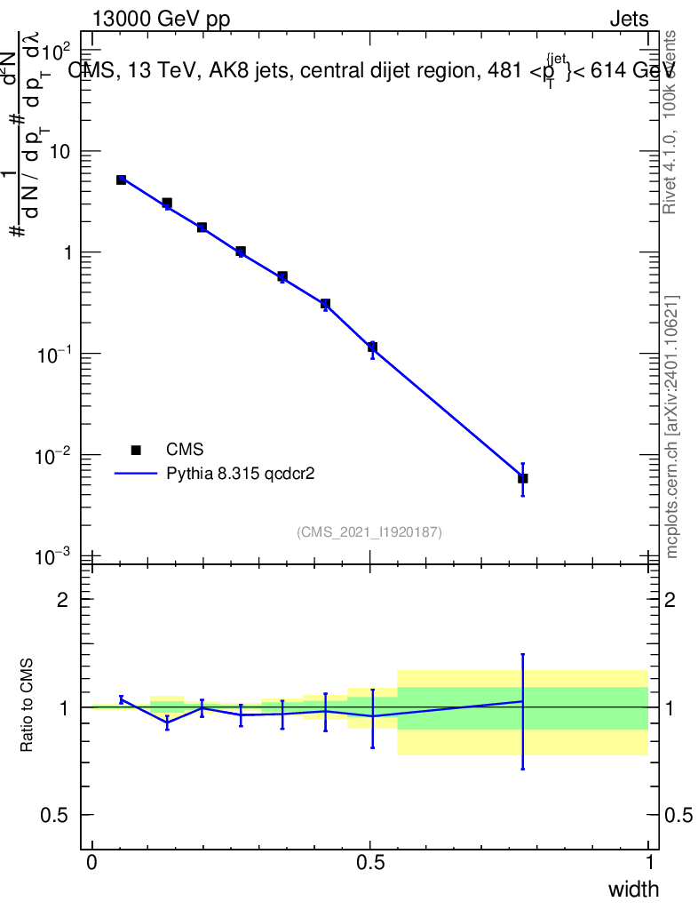 Lines: data, pythia8 8.315 qcdcr2 |