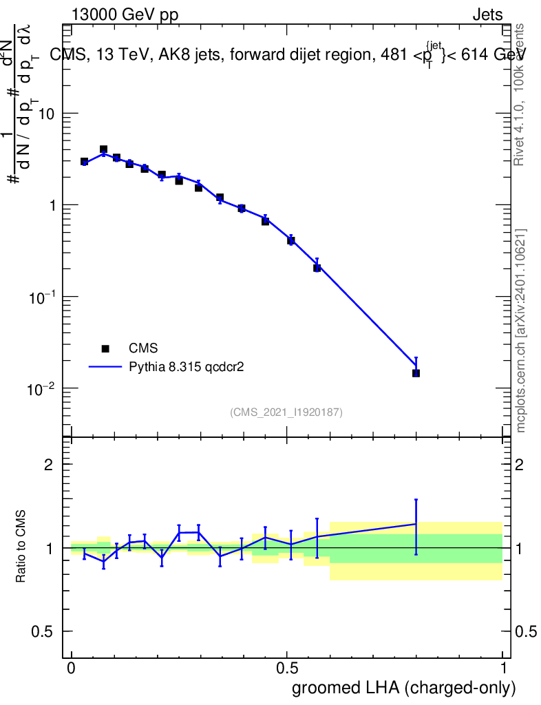 Lines: data, pythia8 8.315 qcdcr2 |