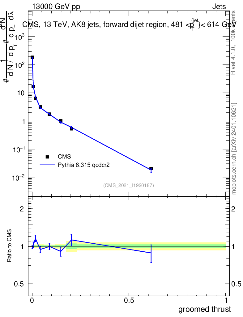 Lines: data, pythia8 8.315 qcdcr2 |