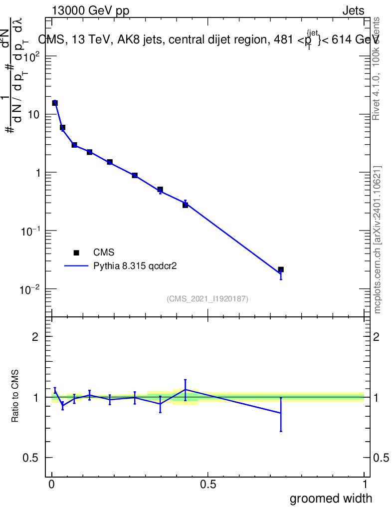 Lines: data, pythia8 8.315 qcdcr2 |