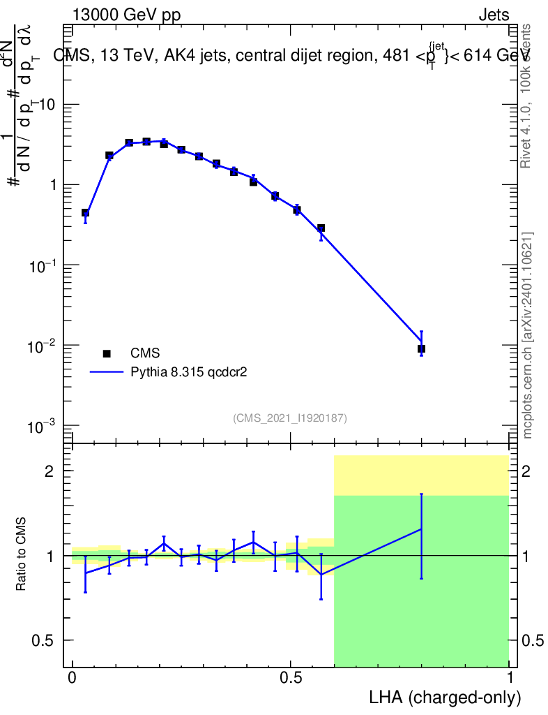 Lines: data, pythia8 8.315 qcdcr2 |