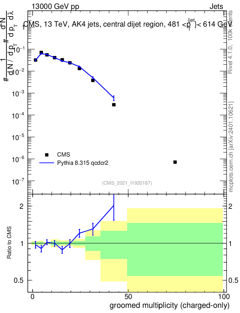 Lines: data, pythia8 8.315 qcdcr2 |
