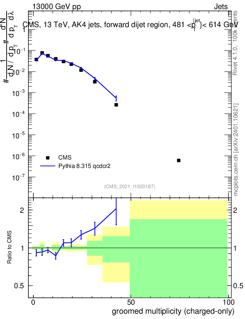 Lines: data, pythia8 8.315 qcdcr2 |