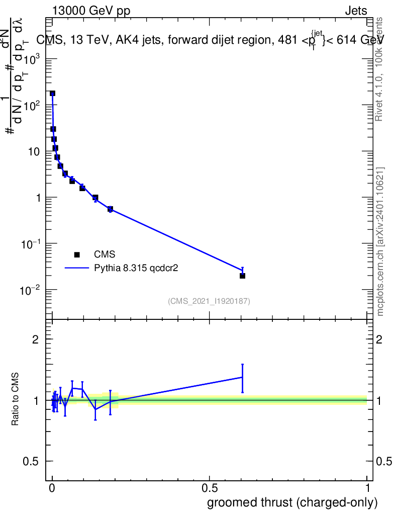 Lines: data, pythia8 8.315 qcdcr2 |