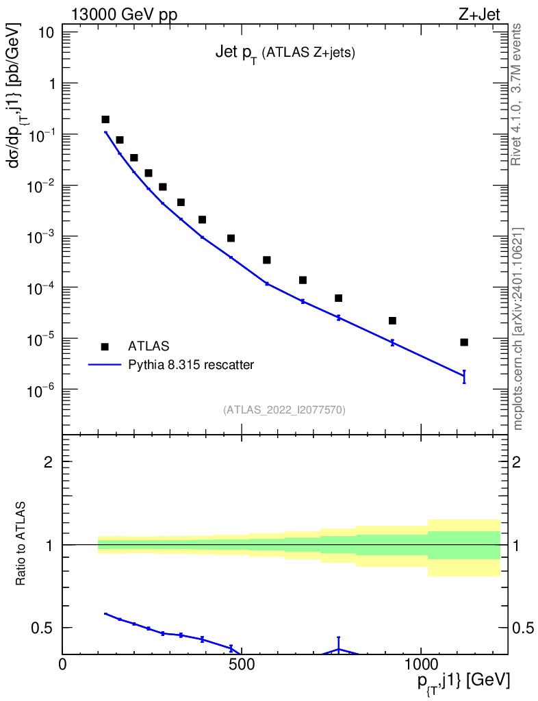 Lines: data, pythia8 8.315 rescatter |