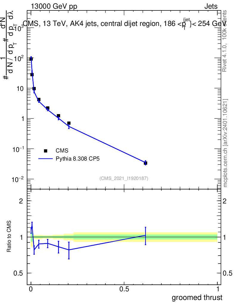 Lines: data, pythia8 8.308 CP5 |
