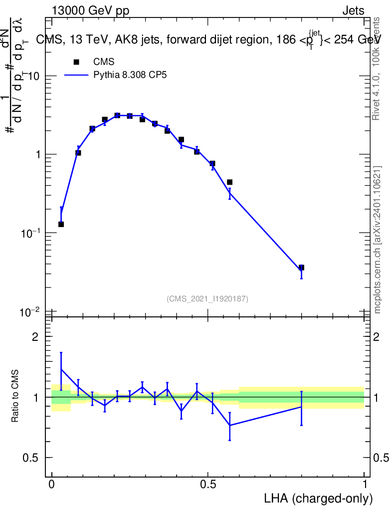 Lines: data, pythia8 8.308 CP5 |