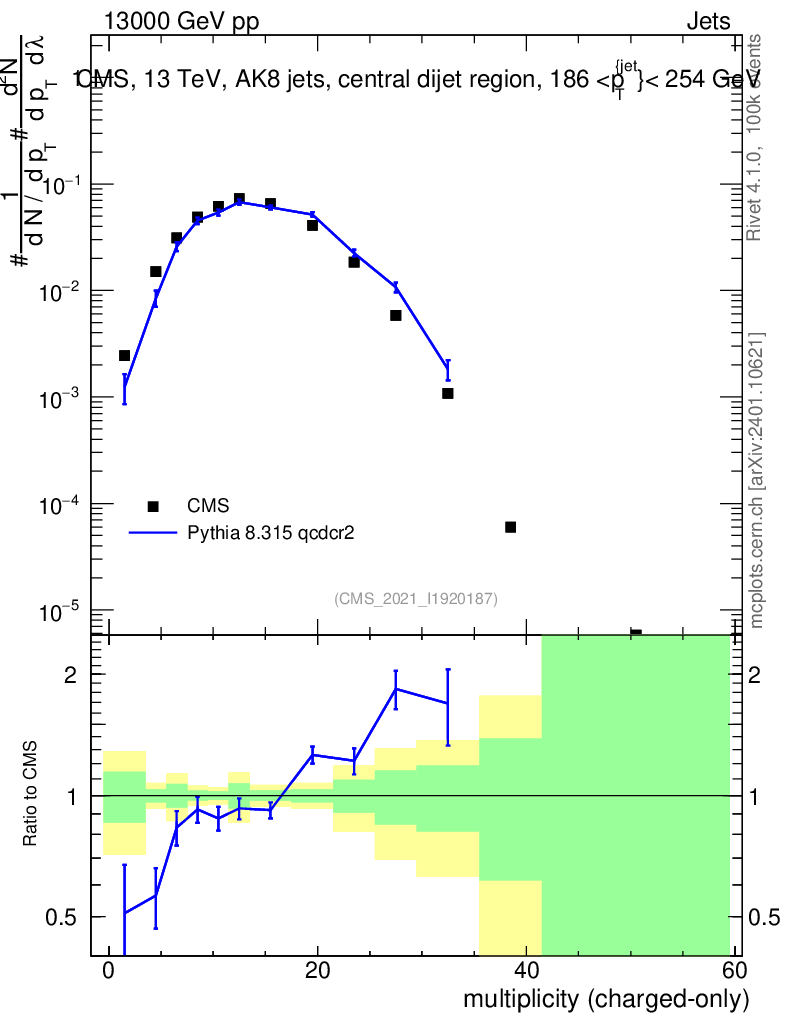 Lines: data, pythia8 8.315 qcdcr2 |