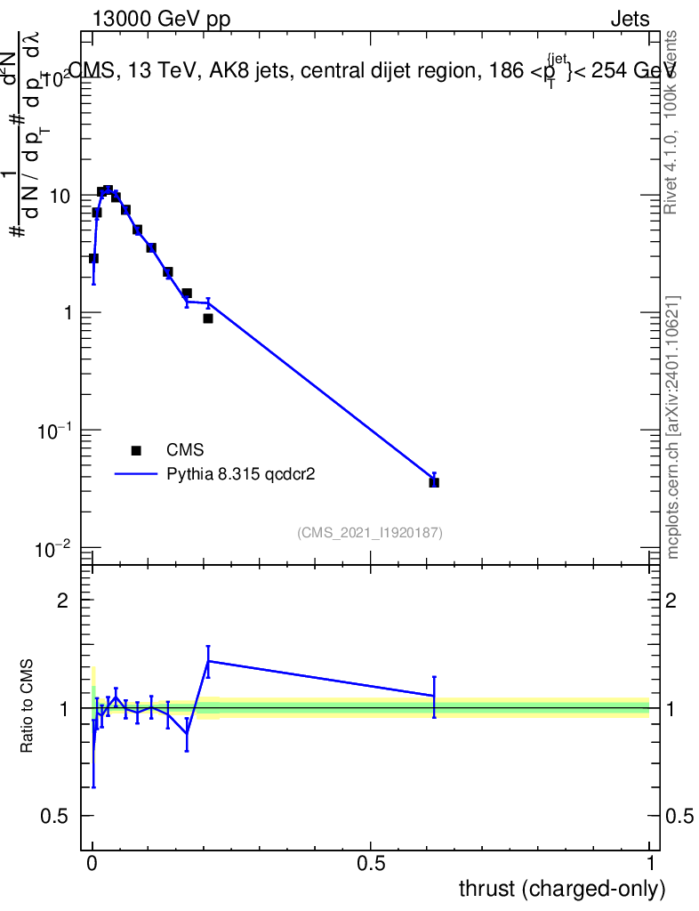 Lines: data, pythia8 8.315 qcdcr2 |