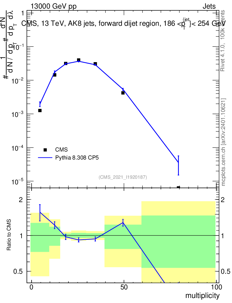 Lines: data, pythia8 8.308 CP5 |