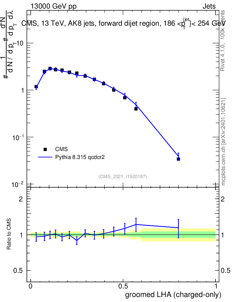 Lines: data, pythia8 8.315 qcdcr2 |