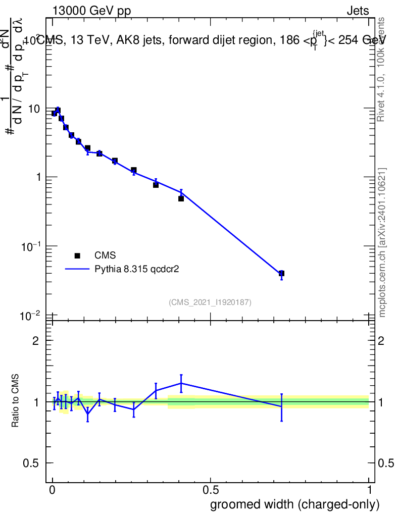 Lines: data, pythia8 8.315 qcdcr2 |