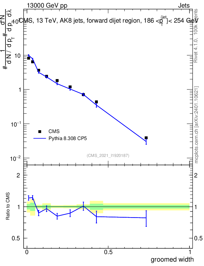 Lines: data, pythia8 8.308 CP5 |