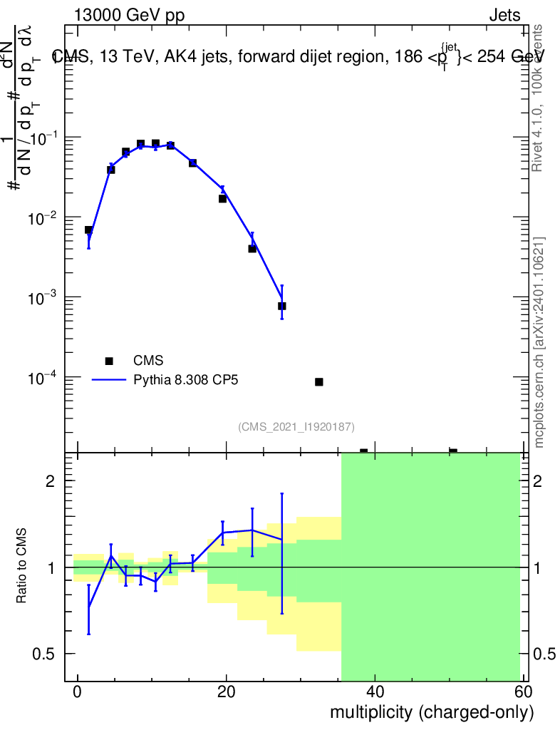 Lines: data, pythia8 8.308 CP5 |