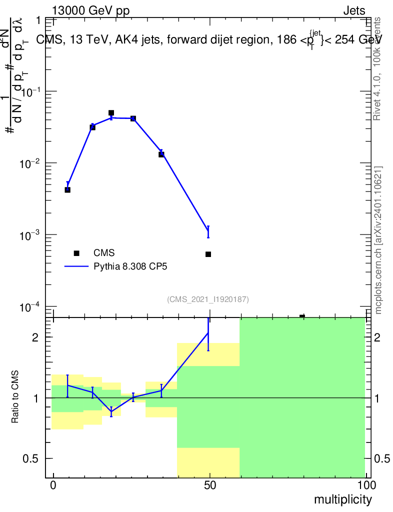 Lines: data, pythia8 8.308 CP5 |