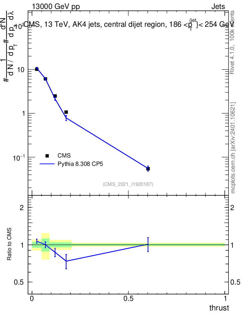 Lines: data, pythia8 8.308 CP5 |