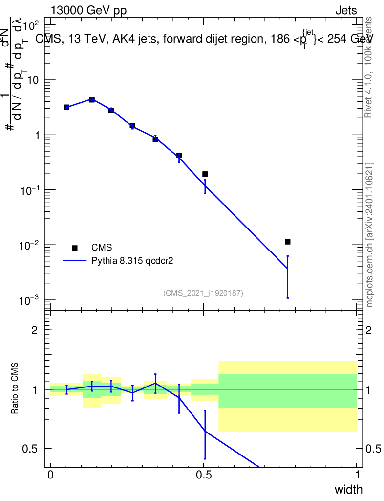 Lines: data, pythia8 8.315 qcdcr2 |