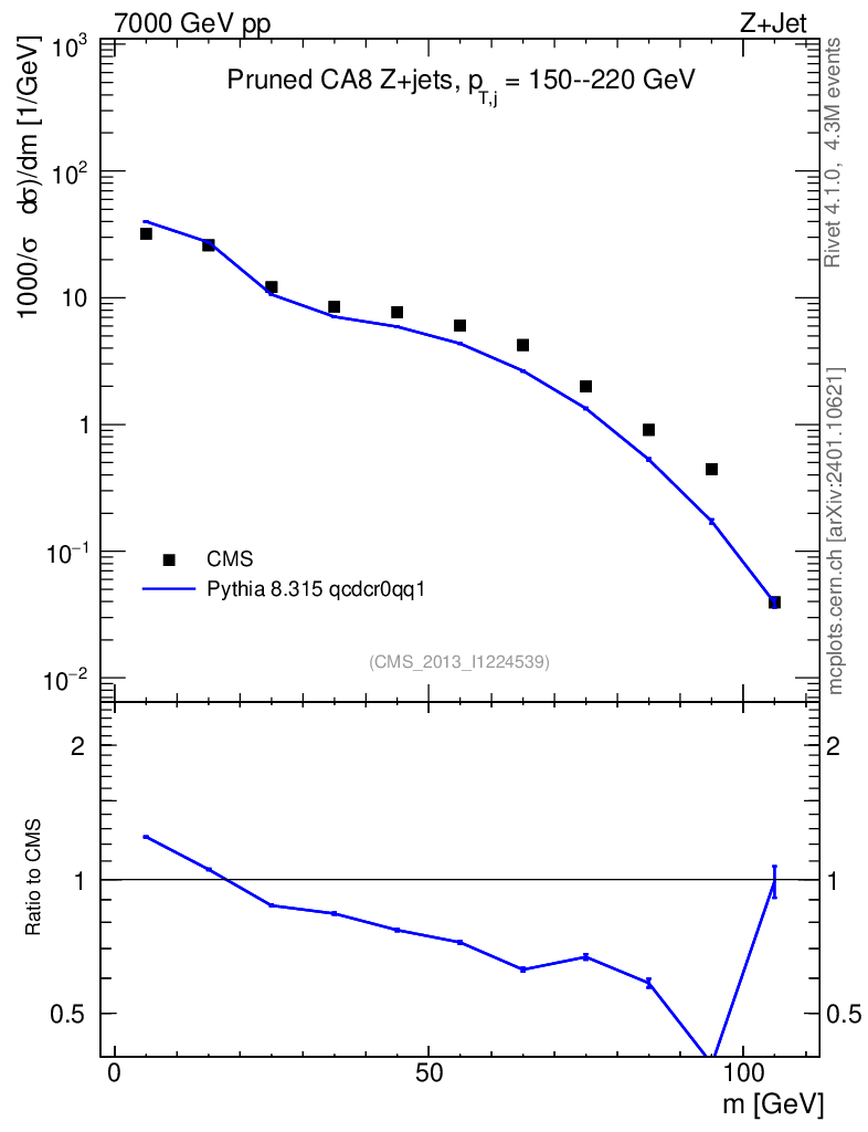 Lines: data, pythia8 8.315 qcdcr0qq1 |