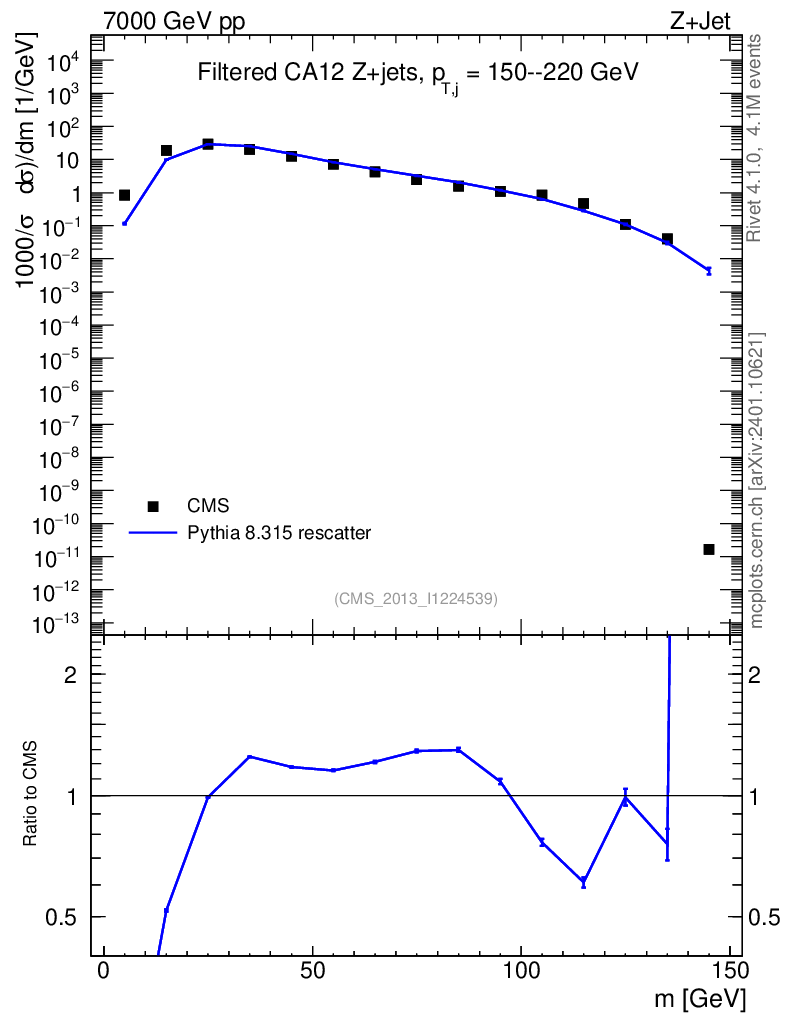 Lines: data, pythia8 8.315 rescatter |
