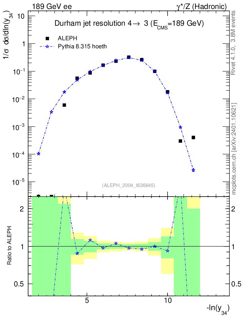 Lines: data, pythia8 8.315 hoeth |