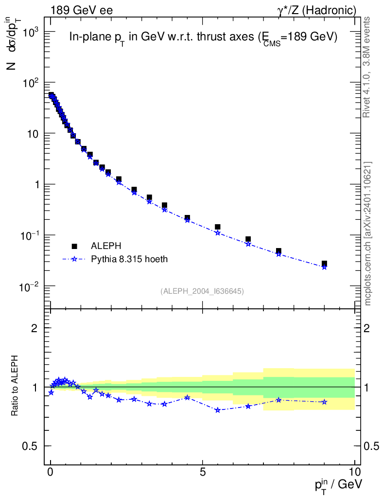 Lines: data, pythia8 8.315 hoeth |
