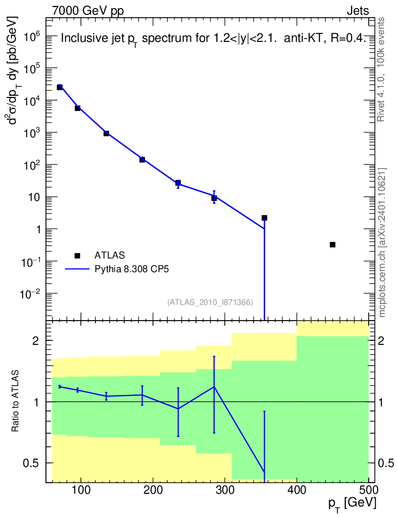 Plot of j.pt in 7000 GeV pp collisions