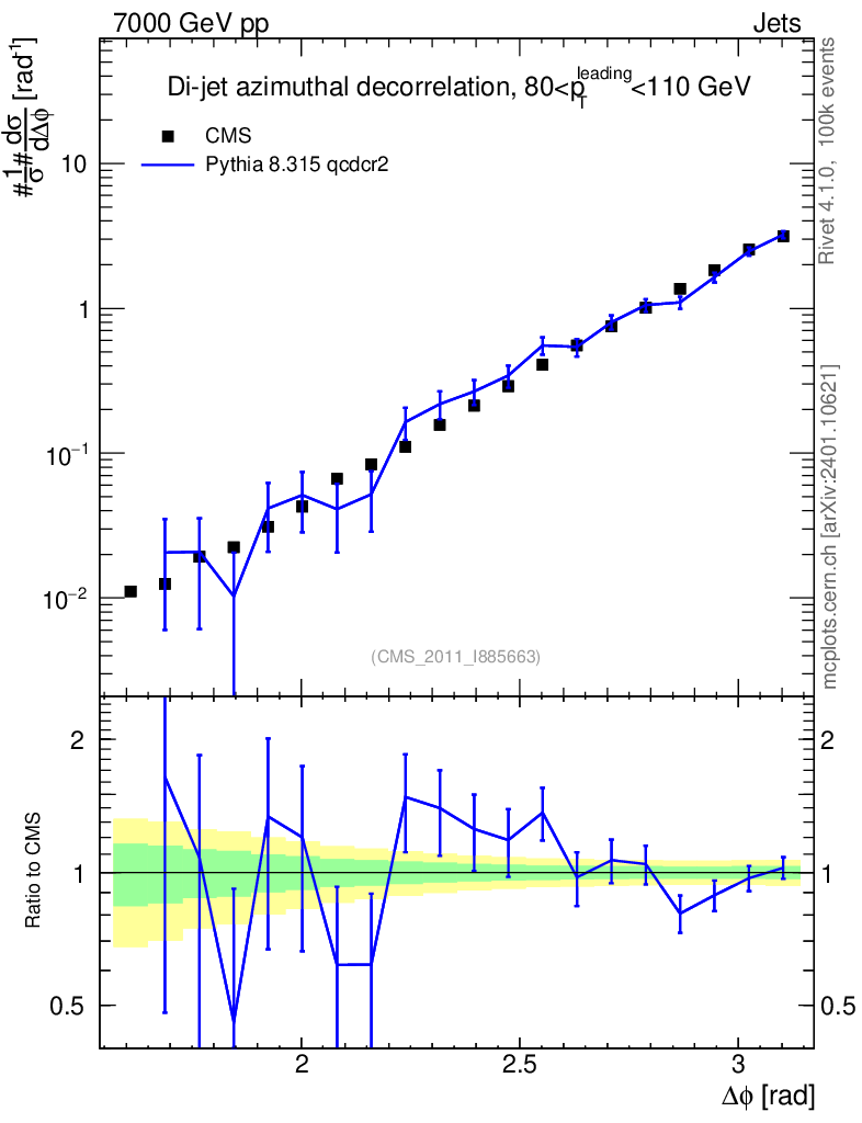 Lines: data, pythia8 8.315 qcdcr2 |