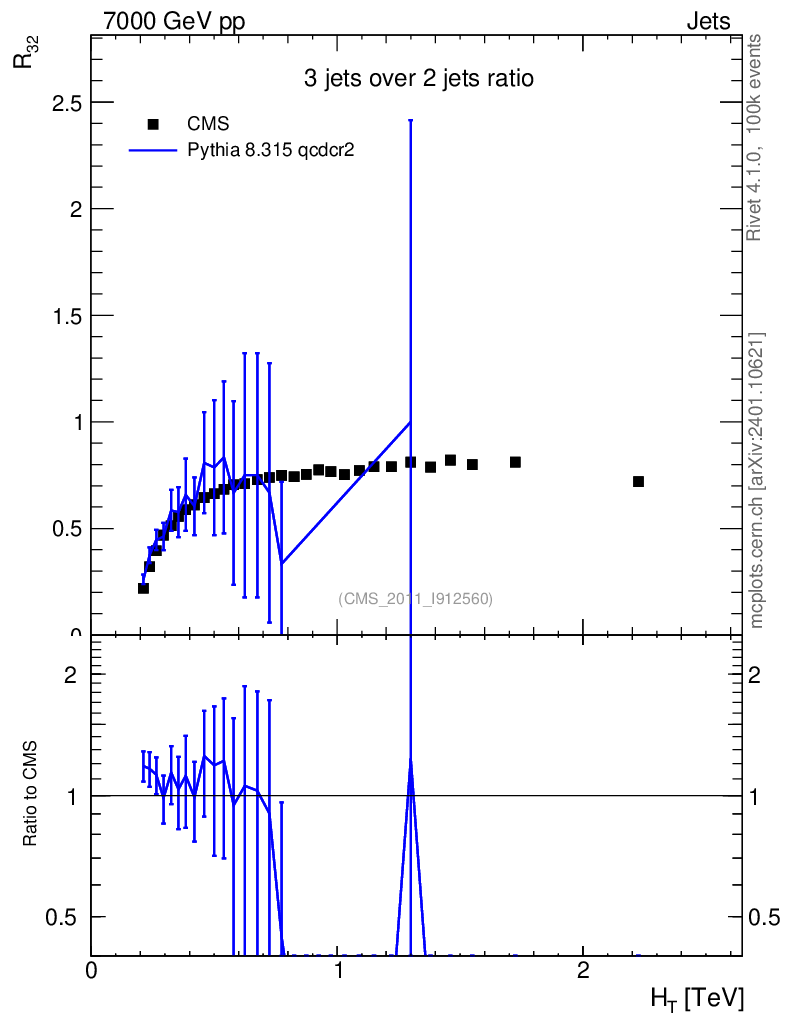 Lines: data, pythia8 8.315 qcdcr2 |