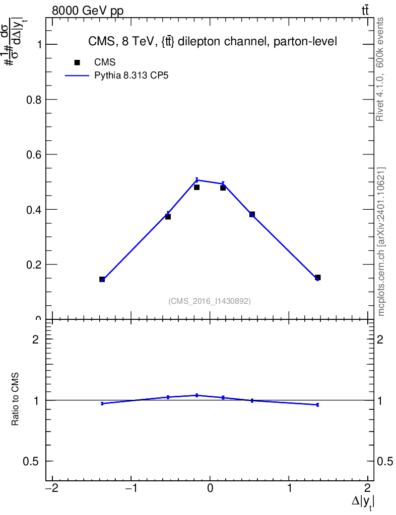 Lines: data, pythia8 8.313 CP5 |