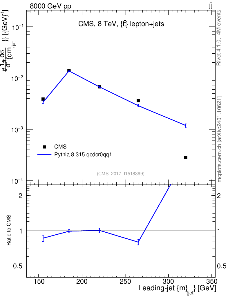 Lines: data, pythia8 8.315 qcdcr0qq1 |
