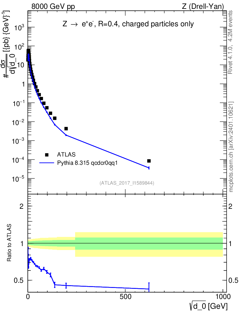 Lines: data, pythia8 8.315 qcdcr0qq1 |