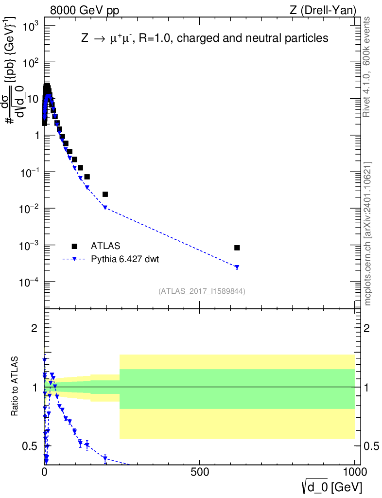 Lines: data, pythia6 6.427 dwt |