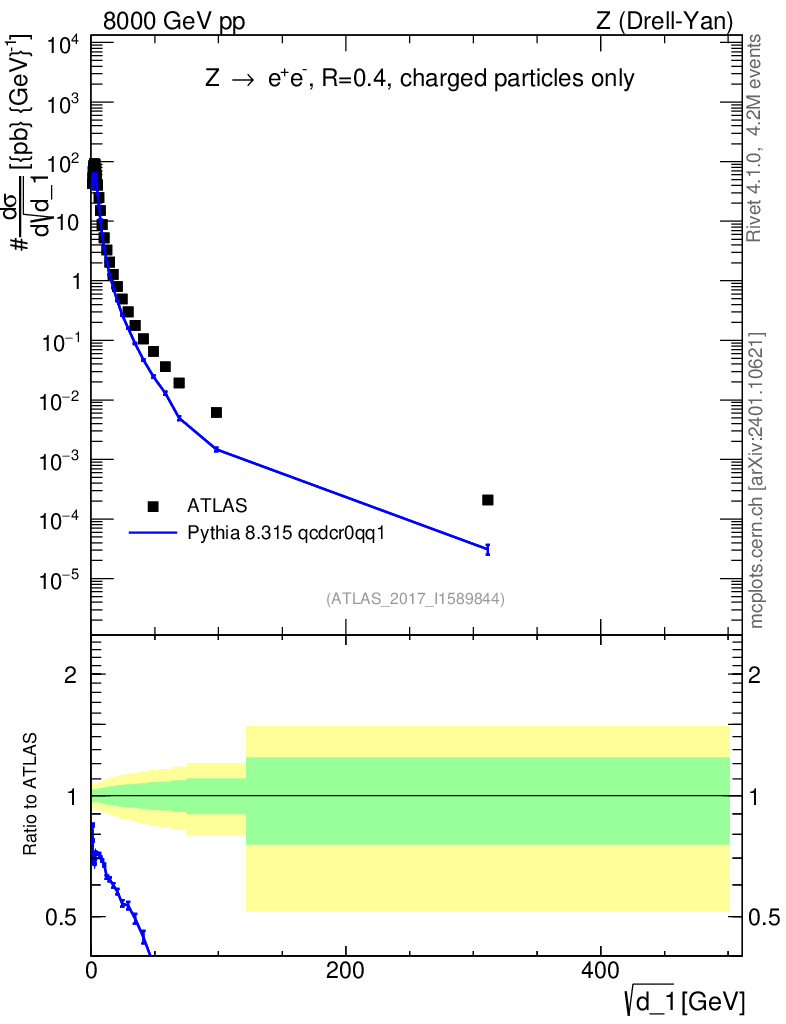 Lines: data, pythia8 8.315 qcdcr0qq1 |
